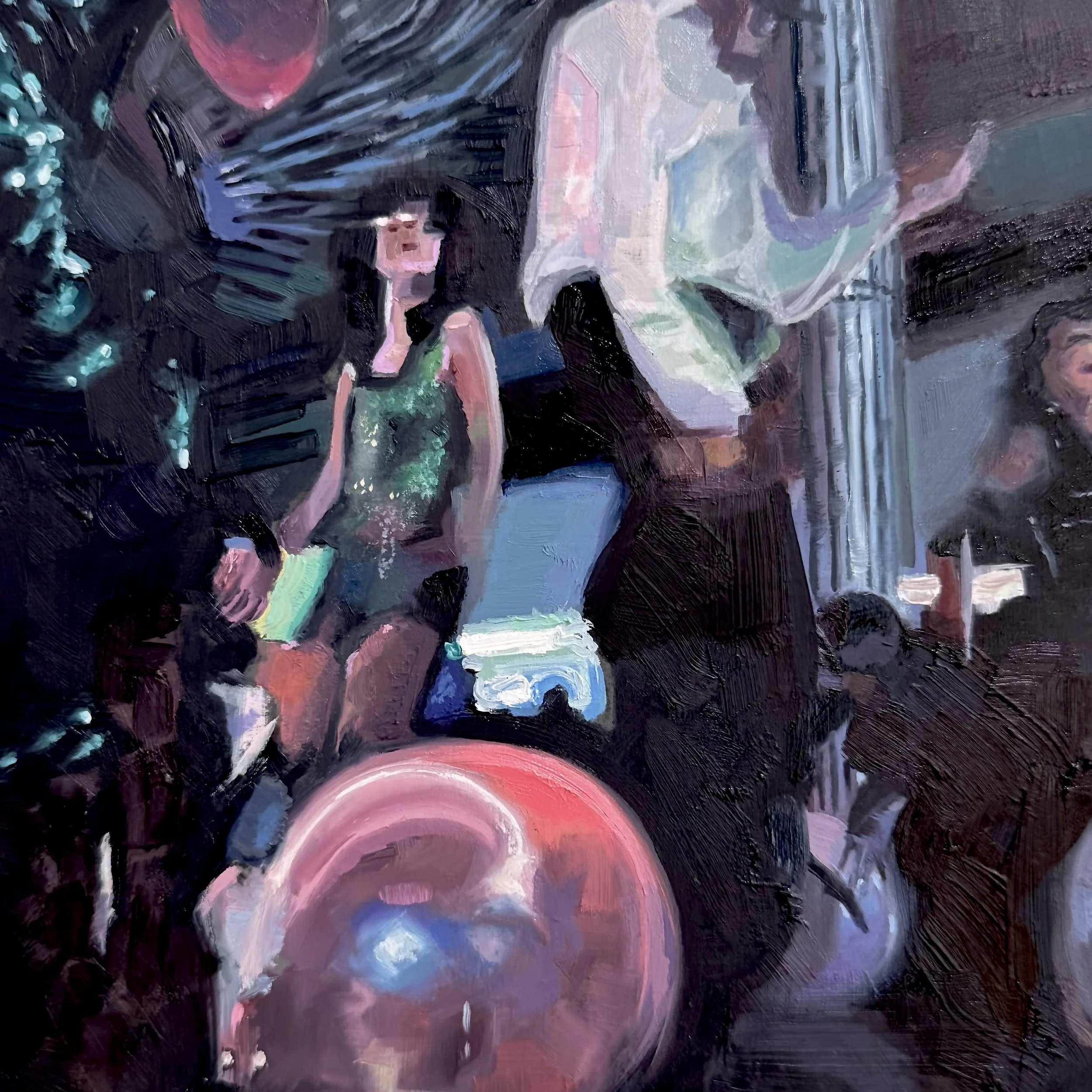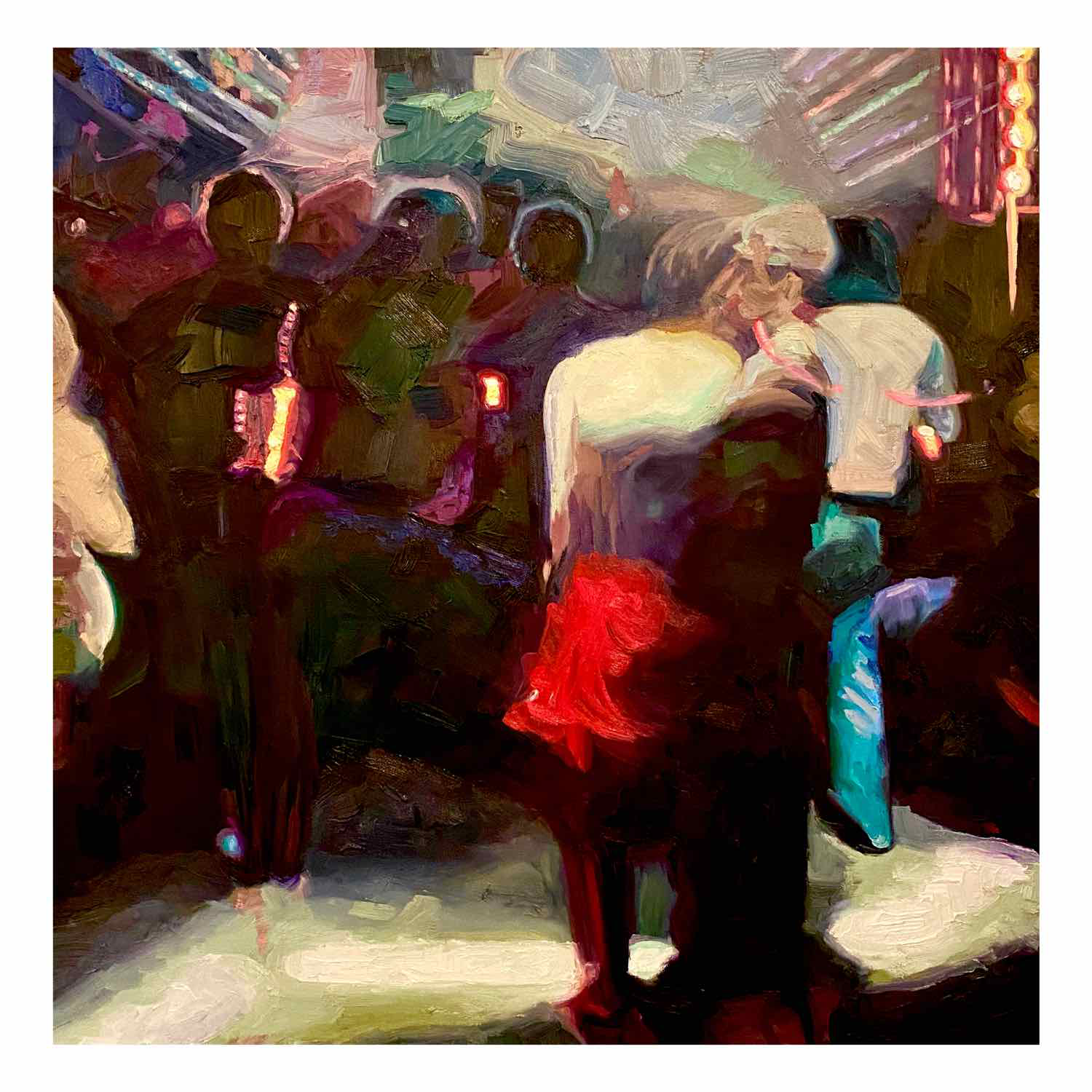 Studio 54 No. 2 16 x 16 inches Oil on Clayboard (Floating Frame - White) Available at The Goldman Art Gallery, MD